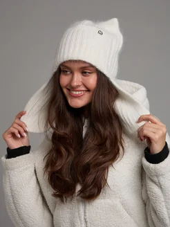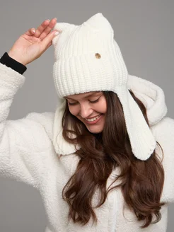 Шапка с ушками ушанка вязаная зимняя ангора на флисе