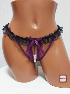 Трусы сексуальные кружевные стринги с доступом с бусинами