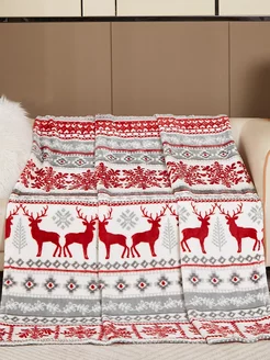 Плед 200х220 новогодний скандинавский с красными оленями
