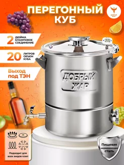 Перегонный куб 20 литров, кламп 2 дюйма, выход под ТЭН