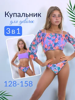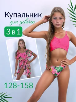 Раздельный купальник для девочки с туникой 3 в 1 детский