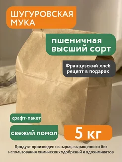 БИО Мука пшеничная высший сорт Шугуровская, 5 кг крафт-пакет