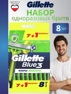 Бритвы мужские одноразовые Blue3 Simple 3 лезвия 8 станков