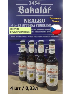 Пиво Бакалар светлое, безалкогольное, 4 шт 0.33л