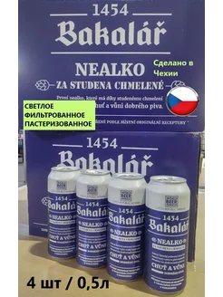 Пиво Бакалар светлое, безалкогольное, 4 шт 0.5л