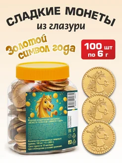 Сладкие монеты на нг"Золотой символ года Лошадь" банка 100шт