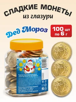 Новогодние сладкие монеты "Золотой Дед мороз" в банке 100шт