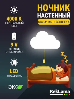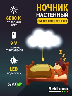 Светильник детский настенный Облако Mini 9V 6К с сонеткой