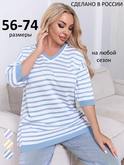 Джемпер белый в полоску больших размеров с рукавом 3 4