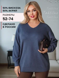 Джемпер больших размеров в длинным рукавом и v-вырезом