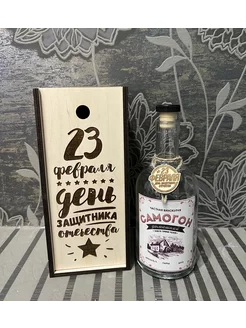 Коробка подарочная 23 февраля с бутылкой