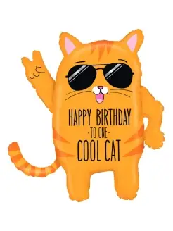 Воздушный шар рыжий кот в очках, С Днем рождения, 84 см