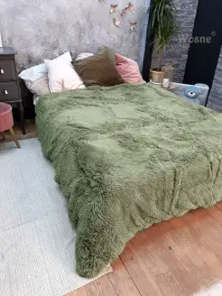 Плед 200х220 с длинным ворсом, травка, меховой, евро