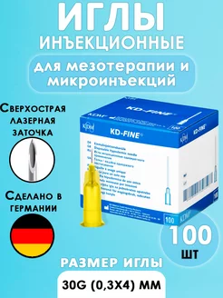 Иглы инъекционные для мезотерапии KDM 30G 0,3x4 мм 100 шт