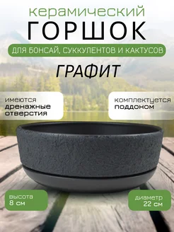 Горшок для бонсай, суккулентов и кактусов с поддоном D22см