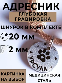 Адресник для собак и кошек с гравировкой, круглый 20 мм