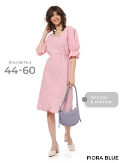 Платье летнее длинное миди рукава-фонарики большие размеры