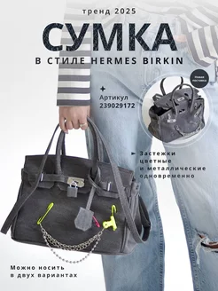 Сумка джинсовая через плечо в стиле Hermes Birkin с цепями