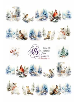 Слайдеры для ногтей, зима, новый год, олень, снегирь, лиса
