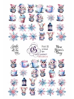 Слайдеры для ногтей, зима, новый год, совы,снежинки