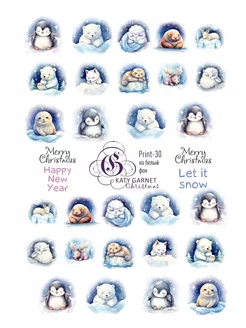Водные наклейки, слайдеры для ногтей, зима, новый год