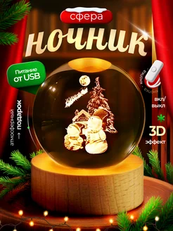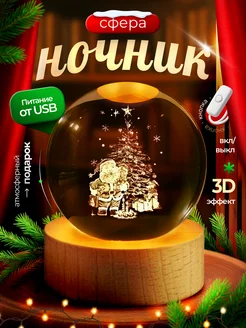 Ночник детский светодиодный стеклянный шар светильник Санта