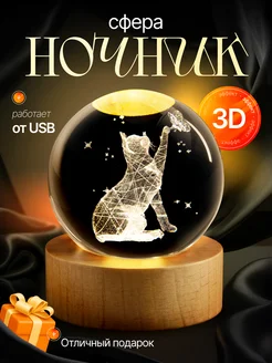 Ночник детский светодиодный стеклянный шар светильник Котик