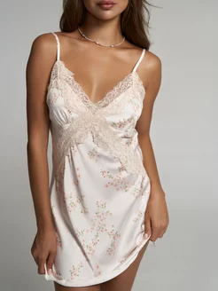 Ночная сорочка ночнушка домашняя шелковая с кружевом