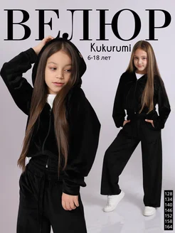 Велюровый костюм для девочки спортивный капюшон и палаццо