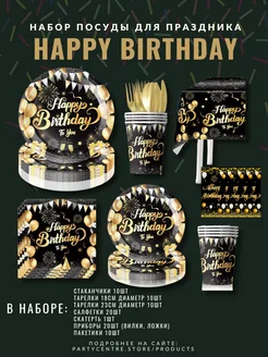 Набор одноразовой посуды для праздника "Черно-золотой"