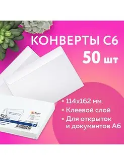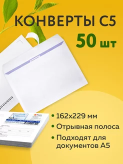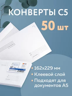 Конверты почтовые бумажные С5 (162х229мм) Куда-Кому 50 штук