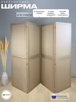Ширма перегородка для зонирования бежевая 4 створки