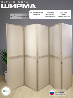 Ширма перегородка для зонирования бежевая 5 створок