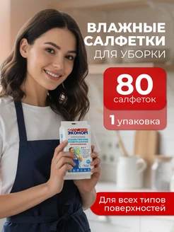 Влажные салфетки для уборки универсальные 80 шт. 1 упаковка