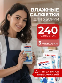 Влажные салфетки для уборки универсальные 240 шт. 3 упаковки