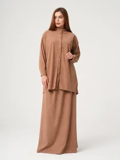Костюм брючный оверсайз бежевый трикотаж Осень