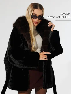Шуба искусственная под норку зимняя короткая оверсайз