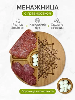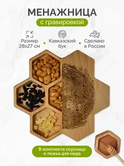 Менажница деревянная с соусницей посуда для сервировки
