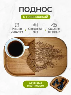 Поднос деревянный с соусницей, набор для сервировки и подачи