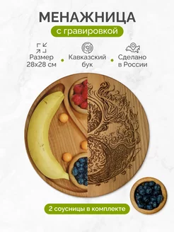 Менажница деревянная с двумя соусницами набор для сервировки