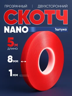 Двухсторонний прозрачный нано скотч, сверхсильный 5м