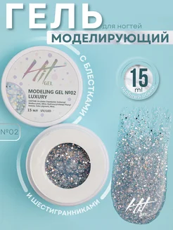 Гель для наращивания ногтей с блестками Luxury №02, 15 мл