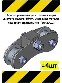 Каретка роликовая, диам. 65мм, под трубу проф, металл, 4 шт
