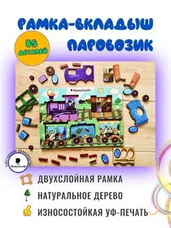 Развивающий пазл деревянная рамка-вкладыш Паровозик