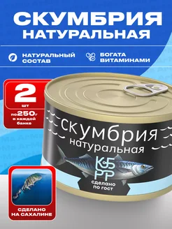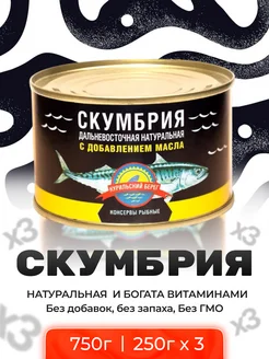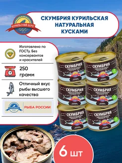 Скумбрия курильская натуральная кусками, 6шт по 250гр