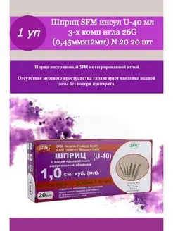 Шприц инсулиновый 1мл 40МЕ 3-х комп с иглой 20 шт. SFM