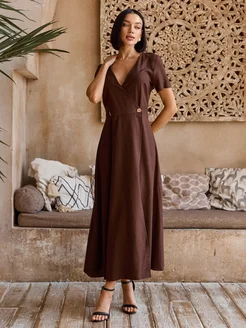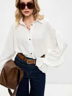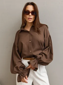 Рубашка коричневая женская оверсайз с рукавами фонариками