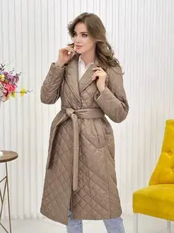 Пальто стеганое демисезонное с поясом