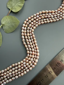 Жемчуг натуральный речной розовый, 5 - 6 мм, 1 нить