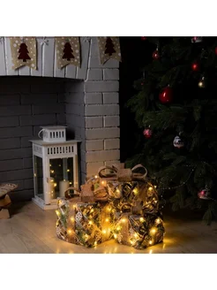 Светодиодная фигура «Подарки с еловой веткой» 15, 20, 25 см